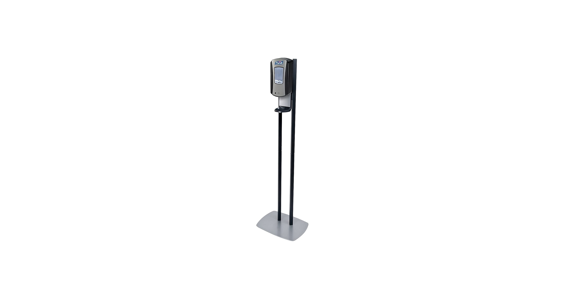 The PURELL LTX-12 Dispenser Floor Stand is a sleek and practical hygiene station designed for convenient placement in reception areas, clinics, offices, retail stores, schools, and public facilities. With its chrome and black finish, this touch-free station blends seamlessly into modern environments while providing a clean and professional look.