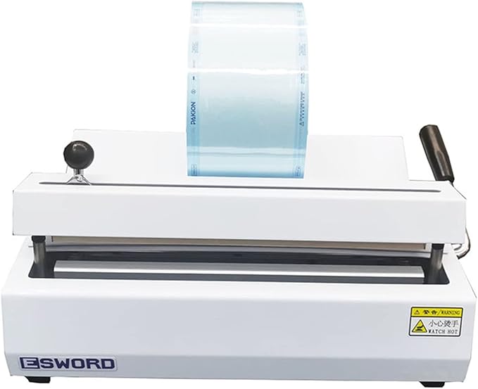 Safety elements such as heat-resistant handles, stable rubber feet, and controlled heating help provide comfortable and dependable operation. The durable construction supports long-term use, while smooth surfaces make cleaning straightforward. Delivered as a ready-to-use physical product with no service components, this machine offers a practical sealing solution for medical facilities, dental clinics, laboratories, and general packaging needs.