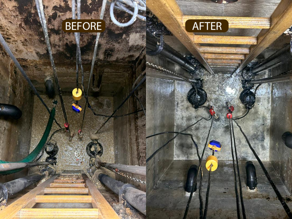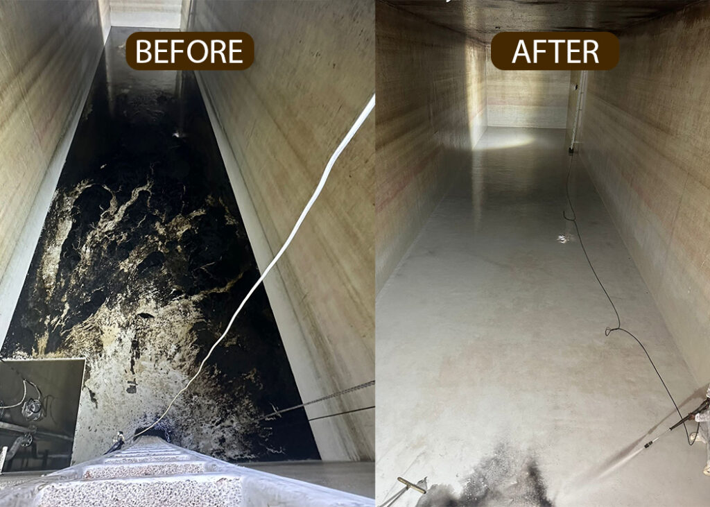 Use high-pressure water jets and rotary scrubbers for deep cleaning.